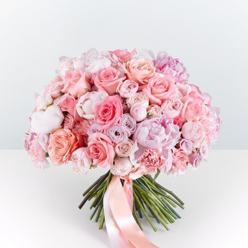 Valoisa ja romanttinen, kuin ensirakkaus, vaaleanpunaisista kukista koostuva kimppu on loistava tapa ilmaista tunteitasi rakkaallesi. Nämä ruusujen ihanat näkymät saavat varmasti naisesi pukeutumaan virtaavaan asuun, viettämään päivän ranskalaisen musiikin parissa ja pyörimään huoneessa hyräillen Edith Piafin "Padam, Padam, Padam". Voit olla varma, että tämän kimpun kanssa hän sanoo ehdottomasti kyllä! Ruusukimppu pehmeissä pastellisävyissä kertoo hellyydestäsi ja puhtaiden tunteidesi puhtaudesta. Katsomalla näitä upeita kukkia valittusi tuntee kaiken italialaisen hienostuneisuuden viehätyksen. Vaaleanpunainen väri ja tuoksuva vihreys voivat lumota jopa itsepäisimmätkin katseet. Nämä ovat erityisen elegantteja kukkia, jotka sopivat hyvin tulevan morsiamen kuvaan.