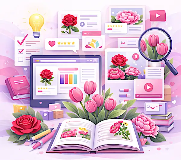 Opit kukkien merkityksestä floristiikan kielellä, opit valitsemaan täydellisen kimpun mihin tahansa tilaisuuteen ja tutustut uusimpiin trendeihin asetelmien suunnittelussa. Tämä osio on luotu inspiroimaan ja auttamaan — tekemään kukkien valinnasta jännittävän harrastuksen ja niiden hoidosta yksinkertaisen ja miellyttävän rutiinin.