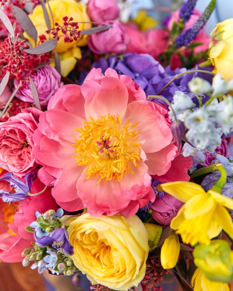 Charming, lush peonies, with delicate petals and a sweet delightful aroma, are a symbol of feminine beauty and generosity. Like roses, these stunning flowers can look luxurious on their own or in a floral bouquet. Regardless of which peonies you mix in a bouquet, they never lose their charm and always look stunning. Peonies are an easy choice for the sweetest mom in the world.