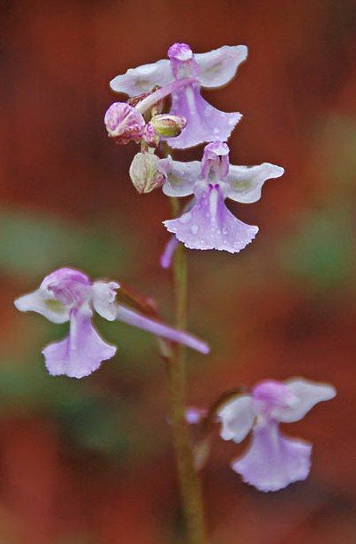 tämä orkidea on liian söpö! Uskomaton "lentävä ankka" on erittäin harvinainen kukka, joka kasvaa Australian Etelä-ja itäosissa, maaseutumetsissä. Se sai nimensä tyypillisen ulkonäkönsä vuoksi. Täydessä kukassa hän näyttää lennon ankalta. Yhdessä varressa voi kasvaa 2-4 kukkaa, joissa on yksi varren tyveen kasvava lehti. Tämä orkidea tunnetaan kirkkaan vaaleanpunaisten, punertavanvihreiden ja violettien kukkien sekoitetusta värityksestä.