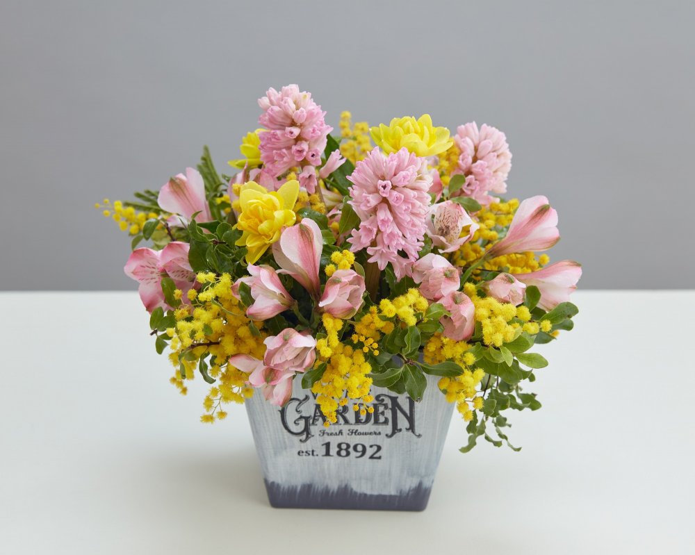 Lähtö, "Hyvästi!", "Kiitos ihanasta ajasta!" Mimosat symboloivat herkkyyttä tai emotionaalista kipua. Keltainen tulppaani ilmaisee toivotonta rakkautta, kun taas valkoinen symboloi anteeksiantoa.